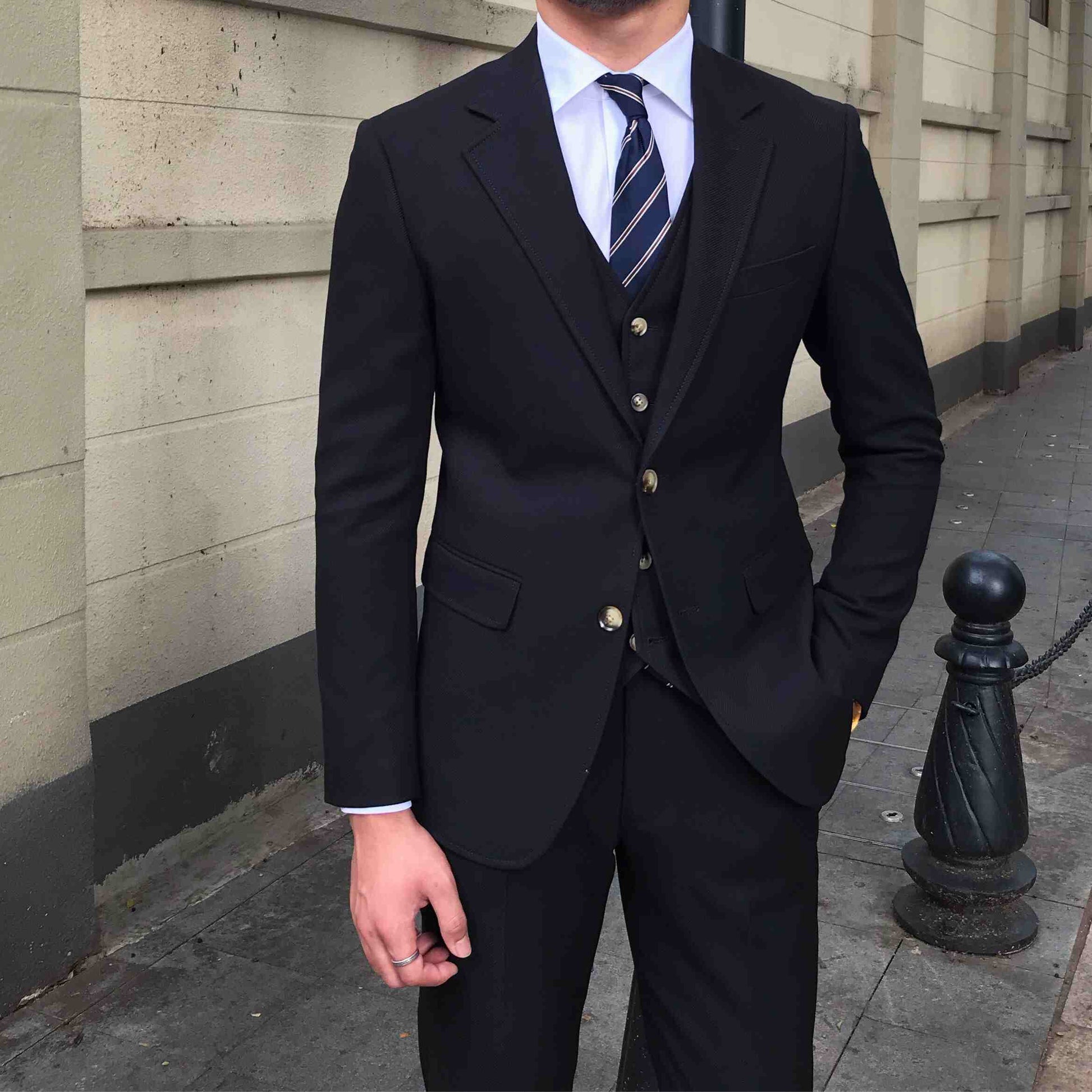 Ontdek de tijdloze elegantie met ons slim-fit drie-delig herenpak, perfect voor zowel formele gelegenheden als casual uitstapjes. Gemaakt van een hoogwaardige mix van polyester en viscose voor optimaal comfort en stijl. Dit pak is ideaal voor de herfst en biedt een trendy look met een solide kleur. Verkrijgbaar in marineblauw en zwart. Kies uit verschillende maten voor de perfecte pasvorm. Let op: de maten vallen kleiner uit, dus overweeg een grotere maat te kiezen.