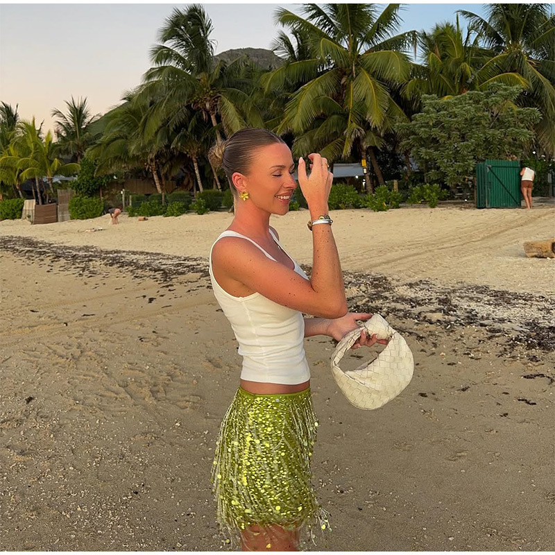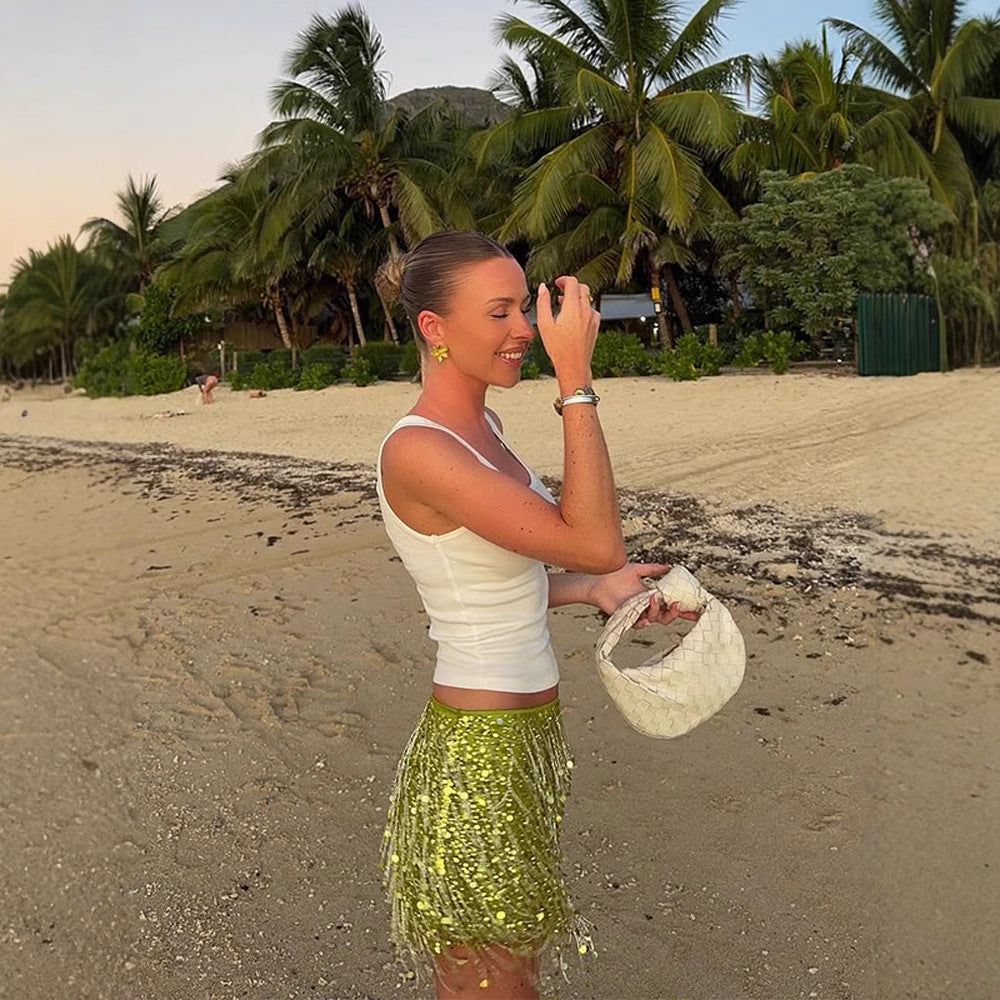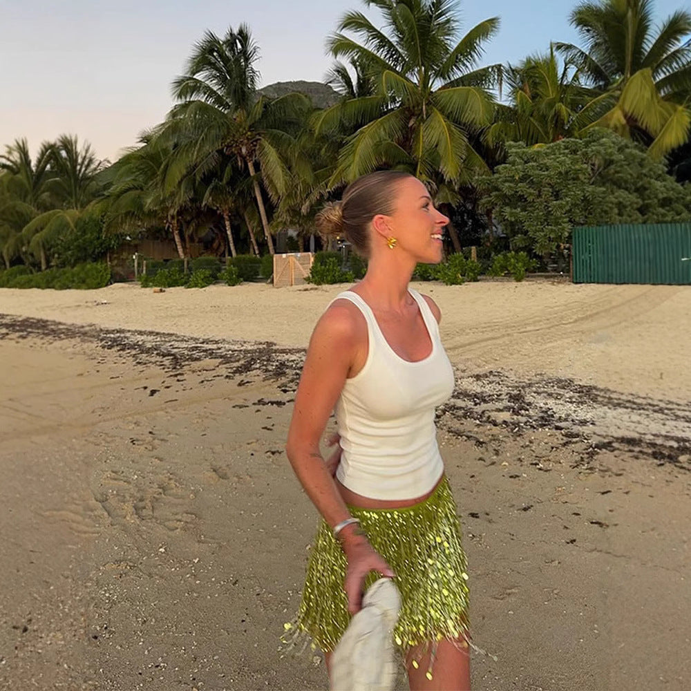 New Fashionable And Eye-catching Solid Color Tassel Sequin Skirt