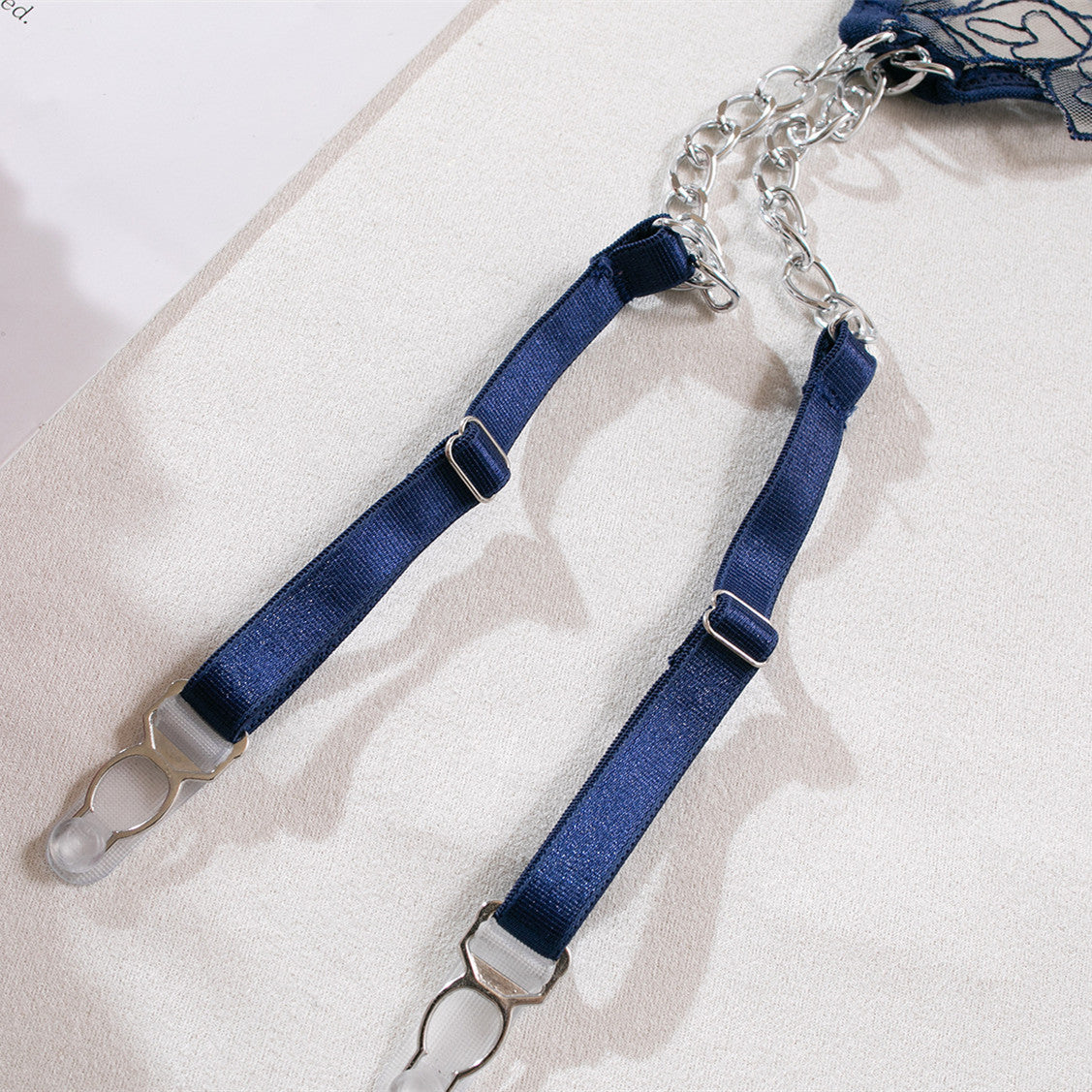 Women's Fashion Metal Chain Thin Embroidery Lace Underwear Suit