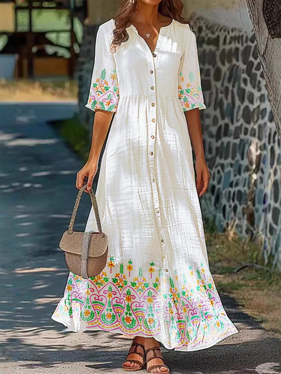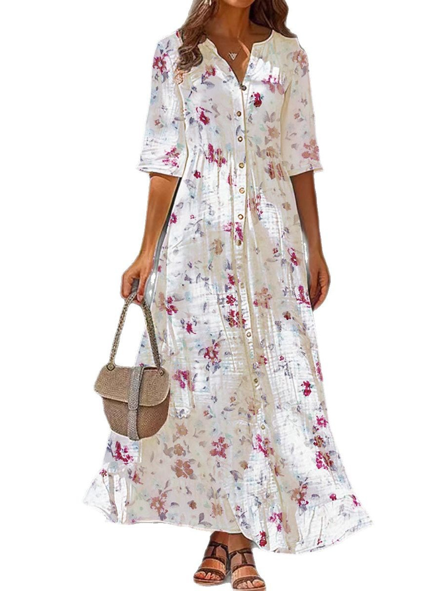 Women's Five Quarter Sleeve Retro Floral Dress