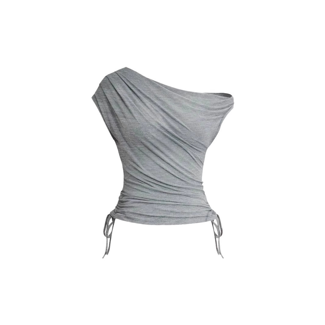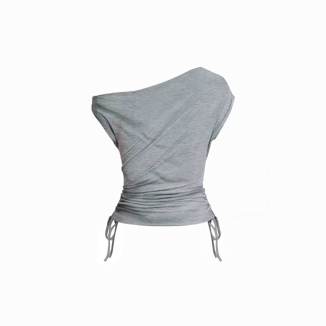 Women's Summer Solid Color Waist Pleat Off Shoulder Short Sleeved T-shirt